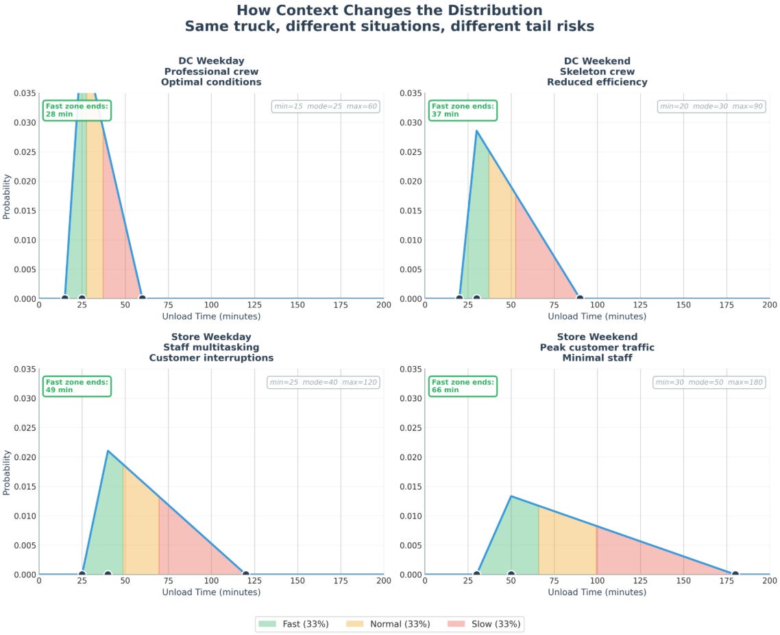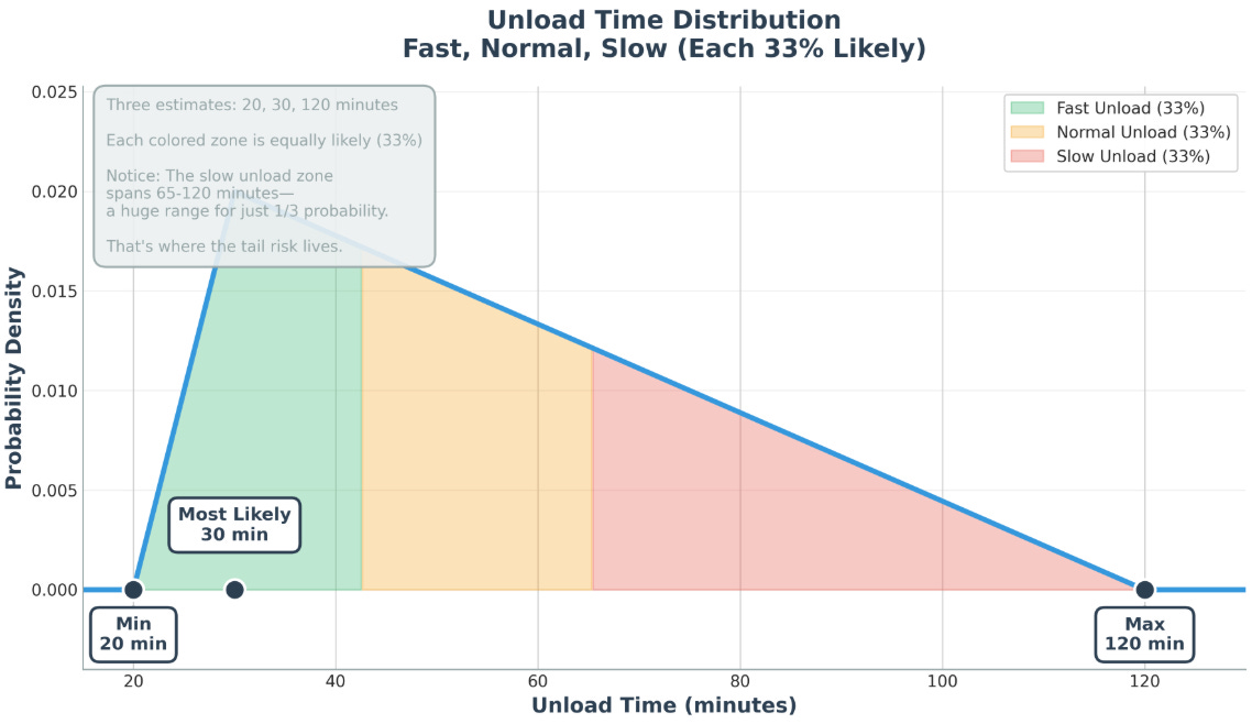 But the “slow unload” zone? It spans 65 to 120 minutes. That’s a huge range for the same probability as 20 to 43 minutes.