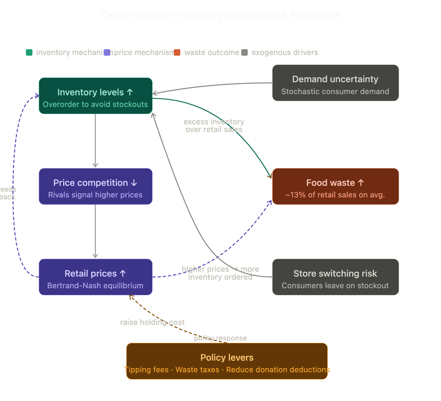 In grocery retail, does competing on price or competing on shelf availability have a bigger impact on food waste?