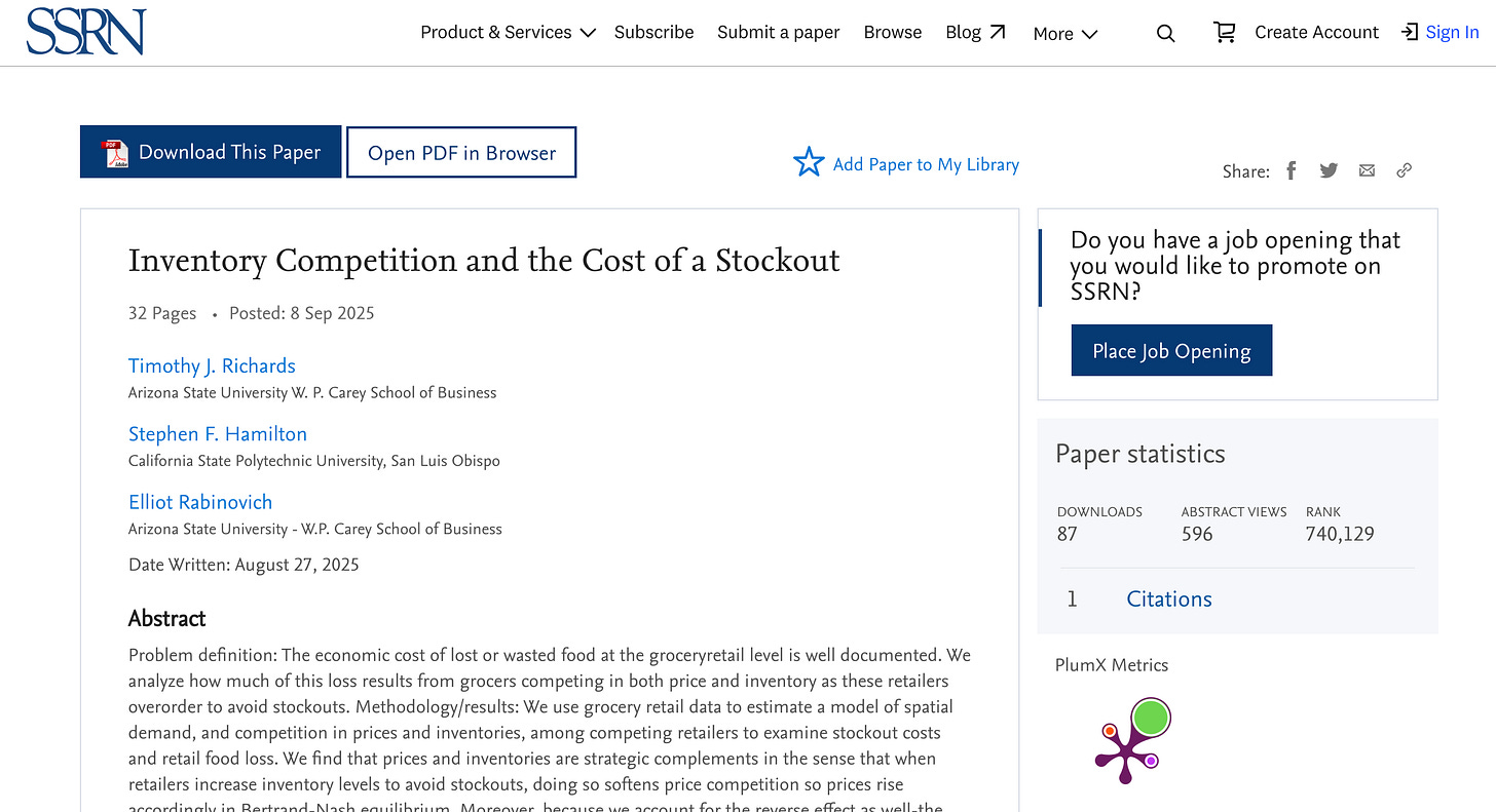 Dan, I know you are waiting for this so here’s the 2-sentence summary of that research paper: Most people think grocery retailers overstock because demand is unpredictable. But actually, they overstock strategically… holding excess inventory signals rivals to raise prices, making waste a feature of competition, not a failure of forecasting.